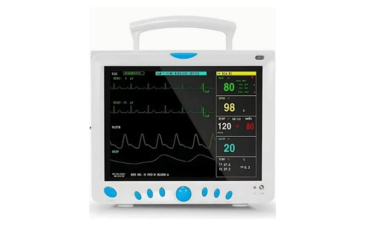 The Contec CMS8000 5‑Parameter Patient Monitor is an advanced medical monitoring device designed to continuously track important patient vital signs in hospitals, clinics, and intensive care units. This multiparameter monitor typically measures ECG, SpO₂ (oxygen saturation), NIBP (blood pressure), RESP (respiration rate), and temperature, providing healthcare professionals with real-time information about a patient’s condition. It features a large 12.1-inch color TFT display that shows clear waveforms and monitoring data simultaneously for easy observation. The device also includes audible and visual alarm systems that alert caregivers when vital signs move outside safe ranges. Built with a rechargeable battery and user-friendly controls, it ensures reliable monitoring even during patient transport. Suitable for adult, pediatric, and neonatal patients, the Contec 5-parameter patient monitor provides accurate, stable, and efficient patient monitoring in various healthcare environments.